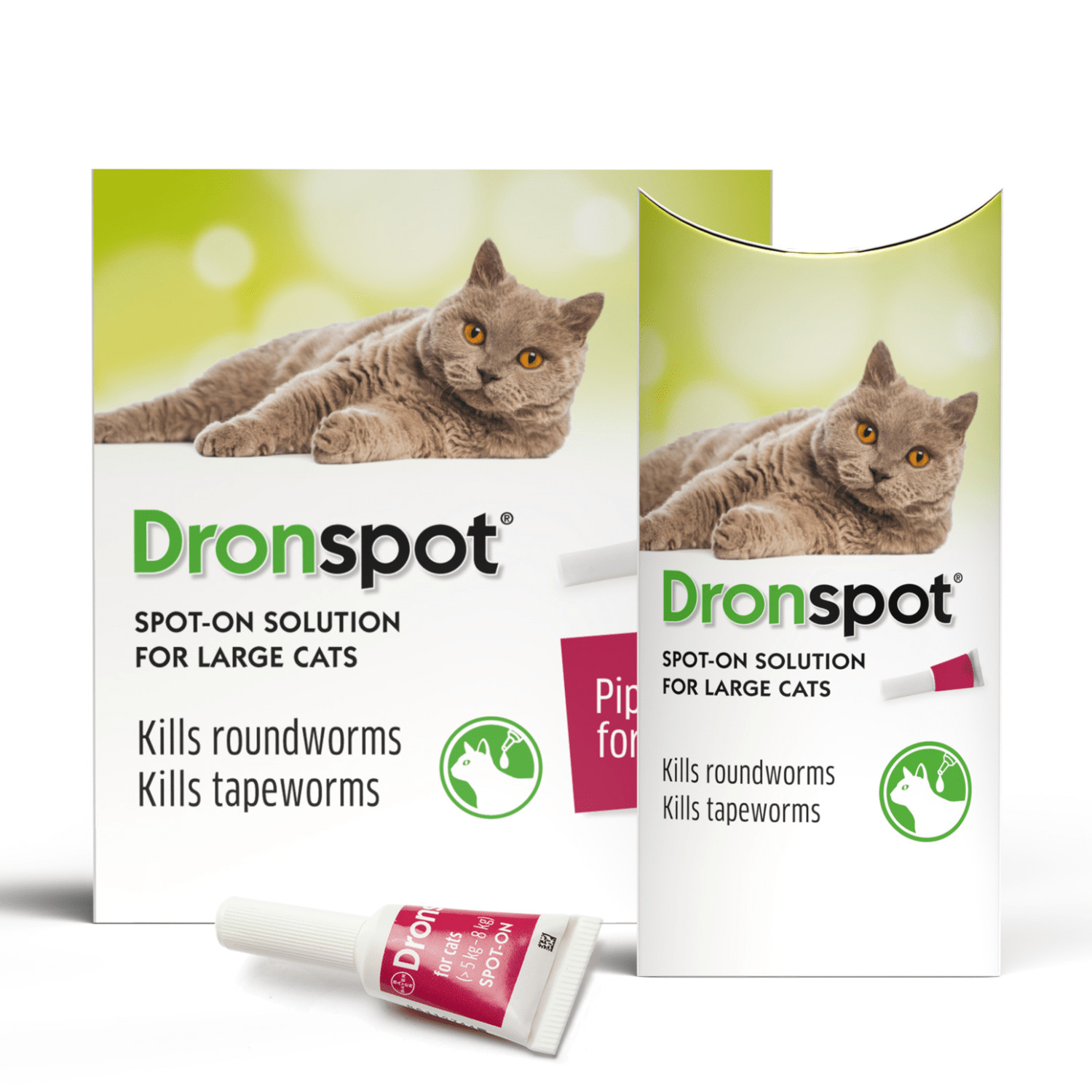 Dronspot is suitable for cats and kittens from 8 weeks of age and over 0.5kg bodyweight.