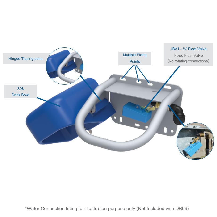 Introducing the award winning Tip Over Drink Bowl from JFC. Launched in late 2015 JFC’s “Dumpy – Tip Over Drinker” has received many awards including the “White Rose Merit Award” at Great Yorkshire Show in July, 2016. The DBL9 was also awarded a silver medal for innovation at the Irish National Dairy Awards. Capacity: 3.5L / 0.9gal Dimensions:340 x 230 x 360 mm