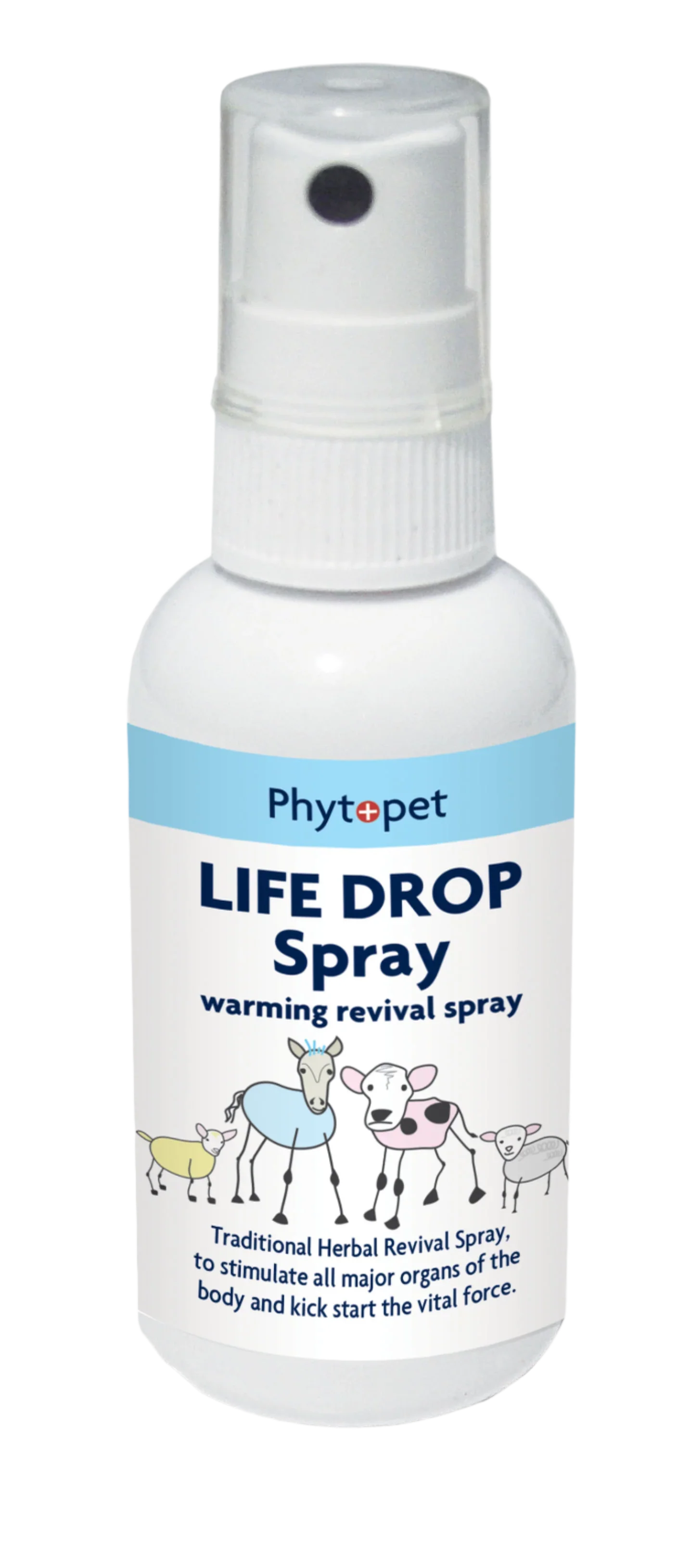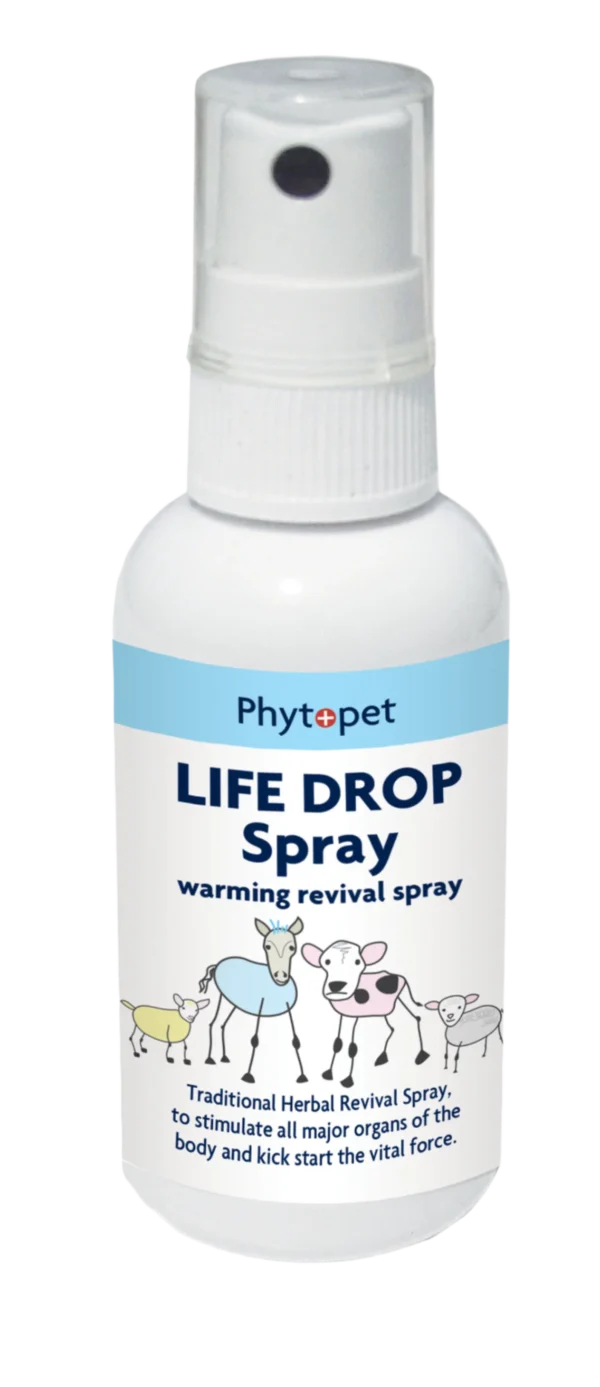 Herbal Kick Start spray. Use to Kick Start the vital force in new born and strugling animals. Elderly animals benefit from Life Drops warming actions. Should be a vital product in every farmers pocket when lambing. Traditional herbal oral spray used to support all major organs of the body and kick start the vital force.