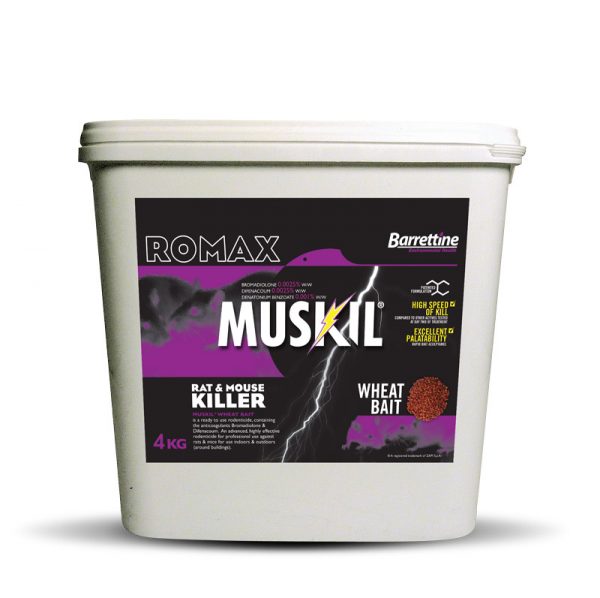 For use against rats & mice. Romax® Muskil® is formulated using high-quality food grade whole wheat, blended with feeding enhancers to improve palatability.