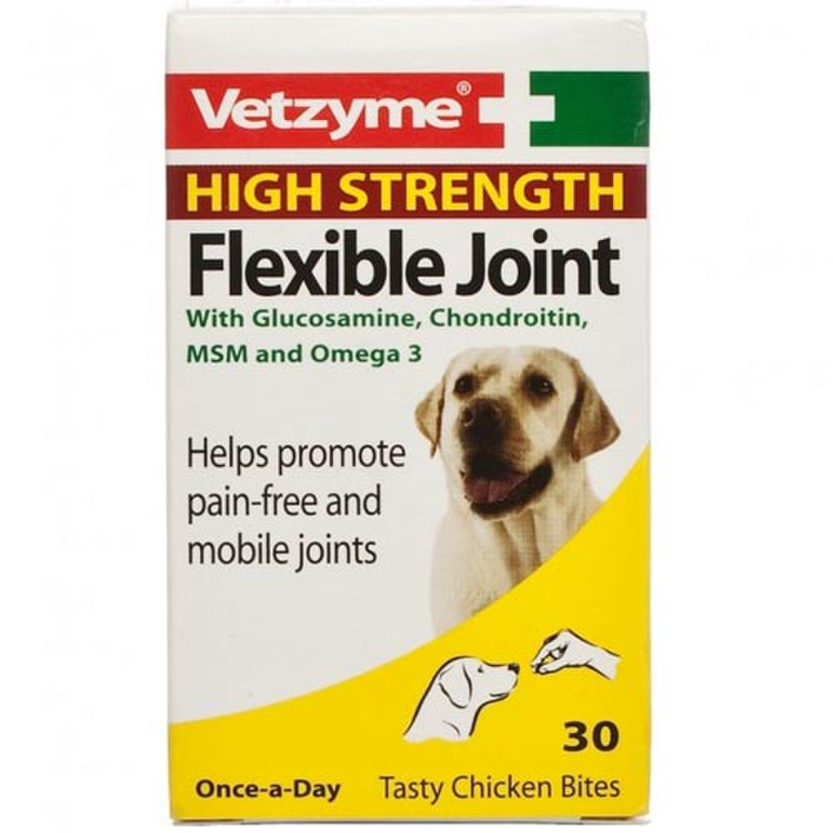 Vetzyme High Strength Flexible Joint Tablets are specifically formulated to help maintain pain-free, supple and mobile joints.